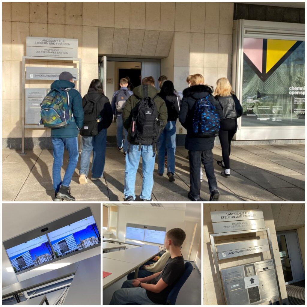 Am 4. Dezember 2025 machten sich interessierte Schüler gemeinsam mit ihrer Praxisberaterin Frau Schmidt auf den Weg nach Chemnitz, um das Landesamt für Steuern und Finanzen zu besuchen. Ziel der Exkursion war es, einen direkten Einblick in die Ausbildung zur Verwaltungsfachangestellten zu erhalten.